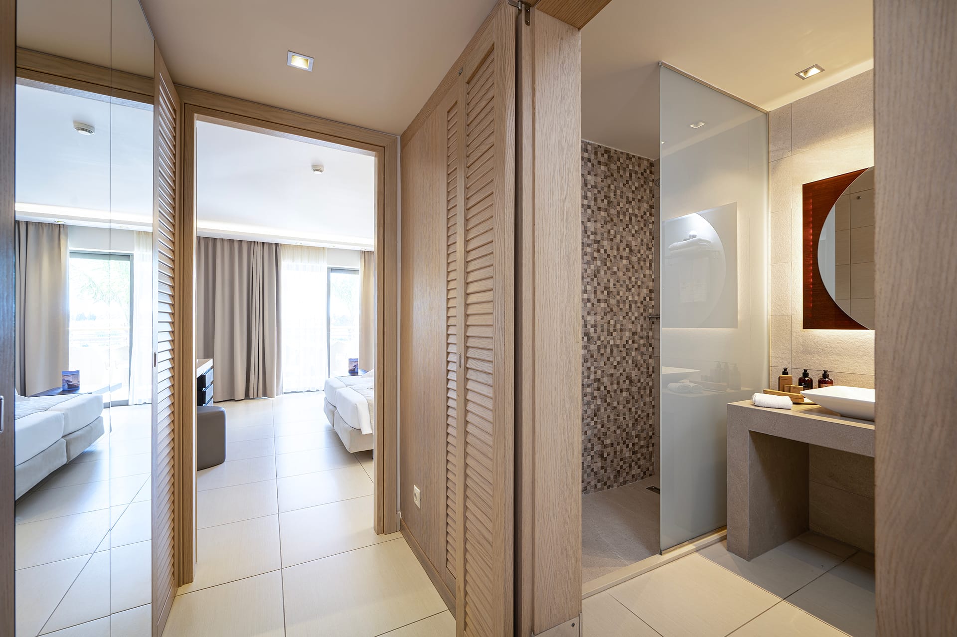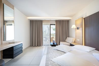 Our One Bedroom Family Rooms are designed to offer discreet luxury, providing the perfect getaway for you & your loved ones. They offer two separate spaces with a main bedroom, entrance room with bed sofa, bathroom with bathtub and embedded shower. A balcony or terrace complements the room, offering garden or pool view.